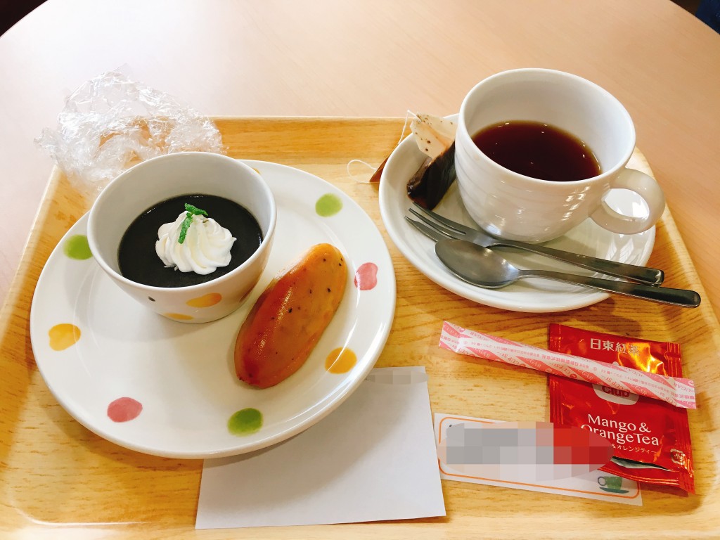 この日は、黒ごまプリンとスイートポテト、紅茶!