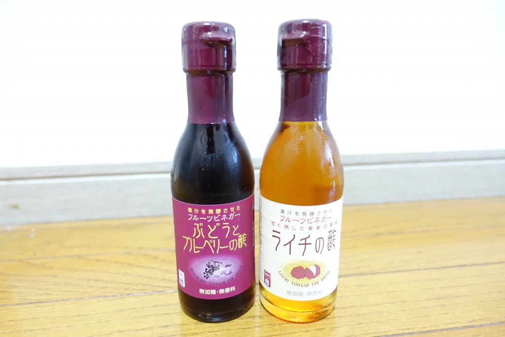 最近飲んだのは、ライチの酢とブルーベリー&ぶどうの酢。