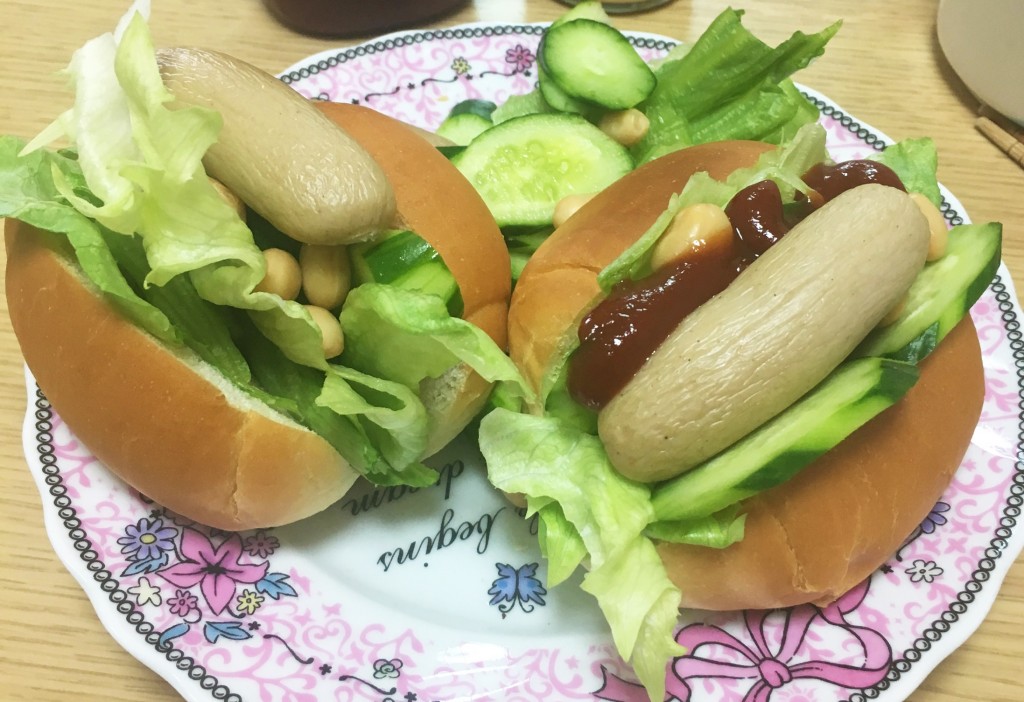 お昼ごはんにサンドイッチ(ホットドック?)にして食べました♪
