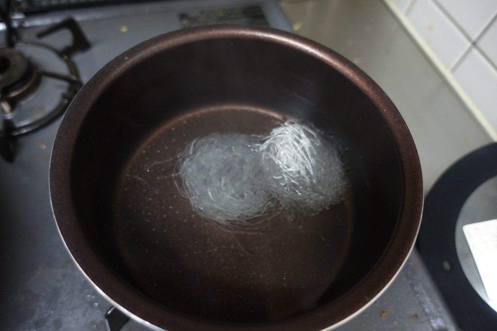 春雨をお湯で戻します。