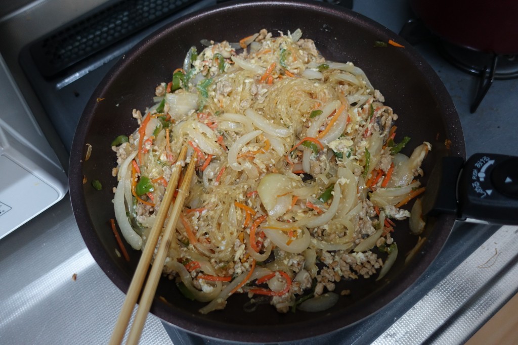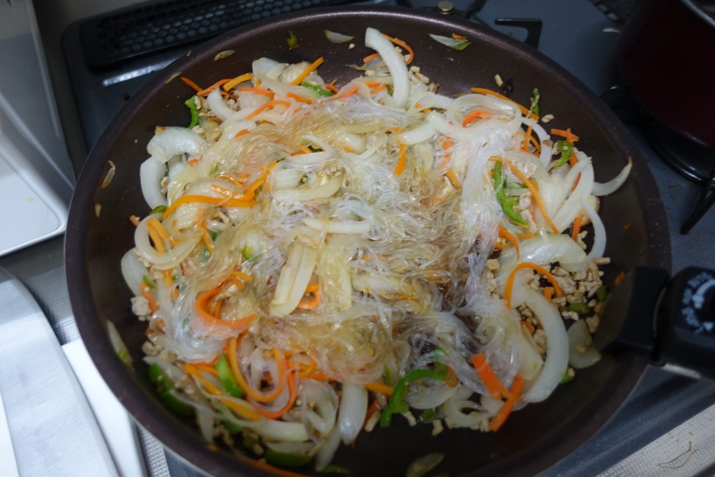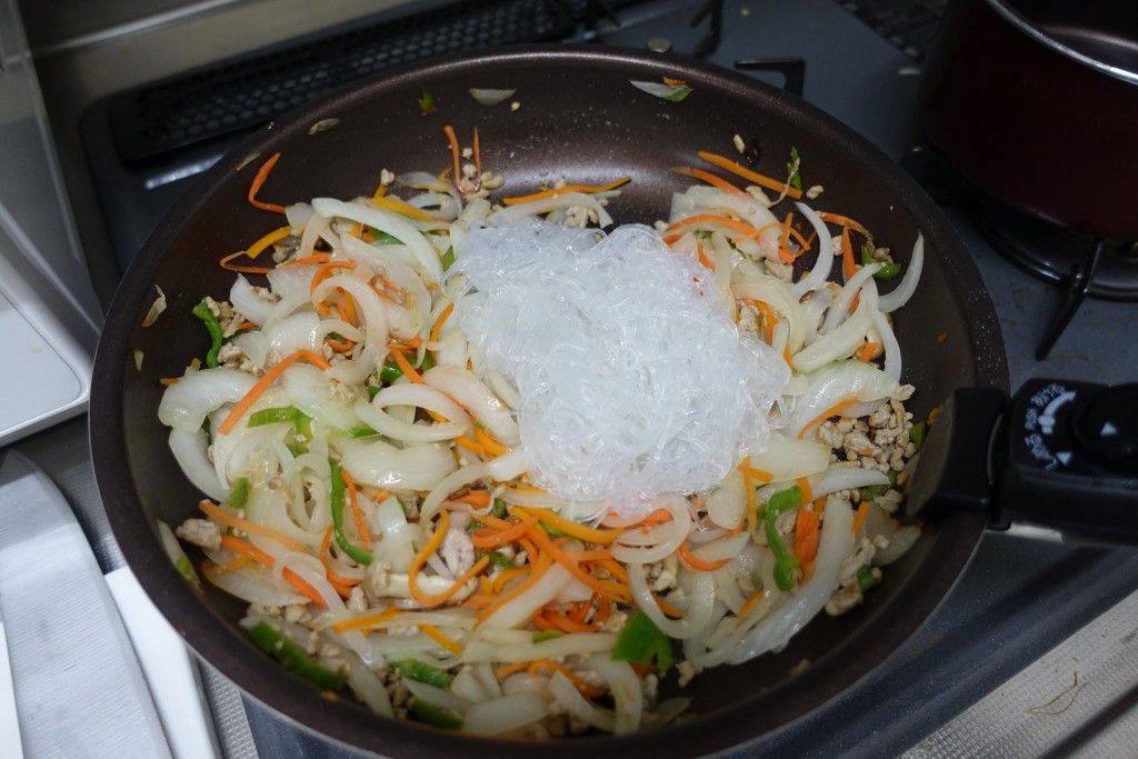 野菜に火が通ったら、春雨を投入。