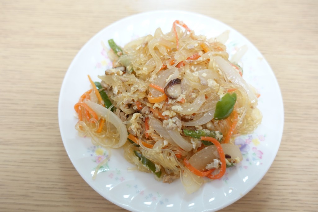 「ひき肉と春雨のオイスターソース炒め」。