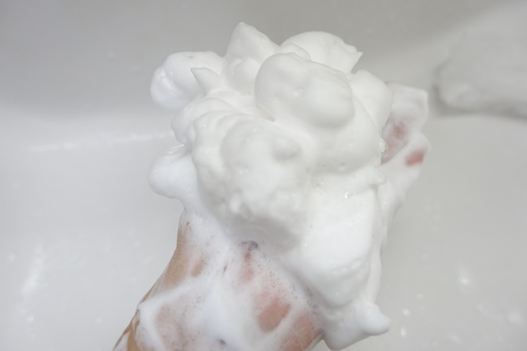 こんなに泡立つと思ってなかったので・・・。顔に付けたらはみ出すぎてエライことになりました(笑)。