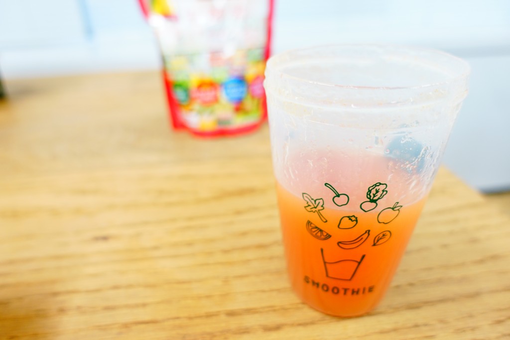 伝わりにくいかもしれないのですが、実はこのスムージー、水でシェイクするだけですごくトロトロになるんです!