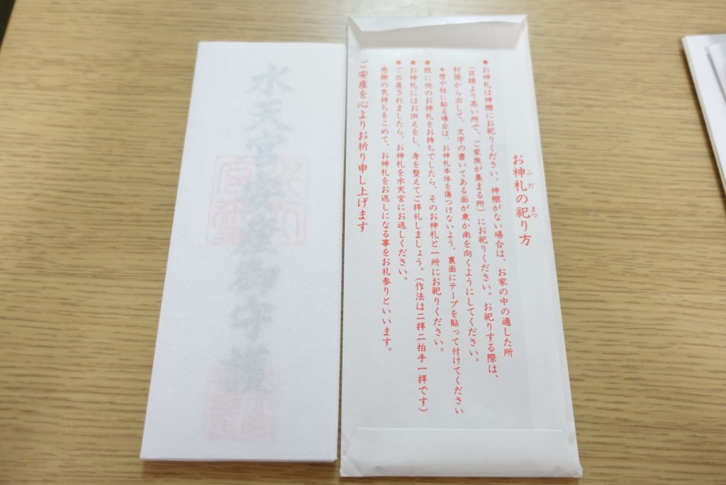 薄紙を外して良いのかどうか分からず、情報を調べたところ、多くの方が「御札の薄紙(包み紙)は、参拝者の手に渡る前に多くの人の手に渡るので保護するためのものであり、家に祀る時は外して良い」とあったため、少しドキドキしつつも外してまつりました。