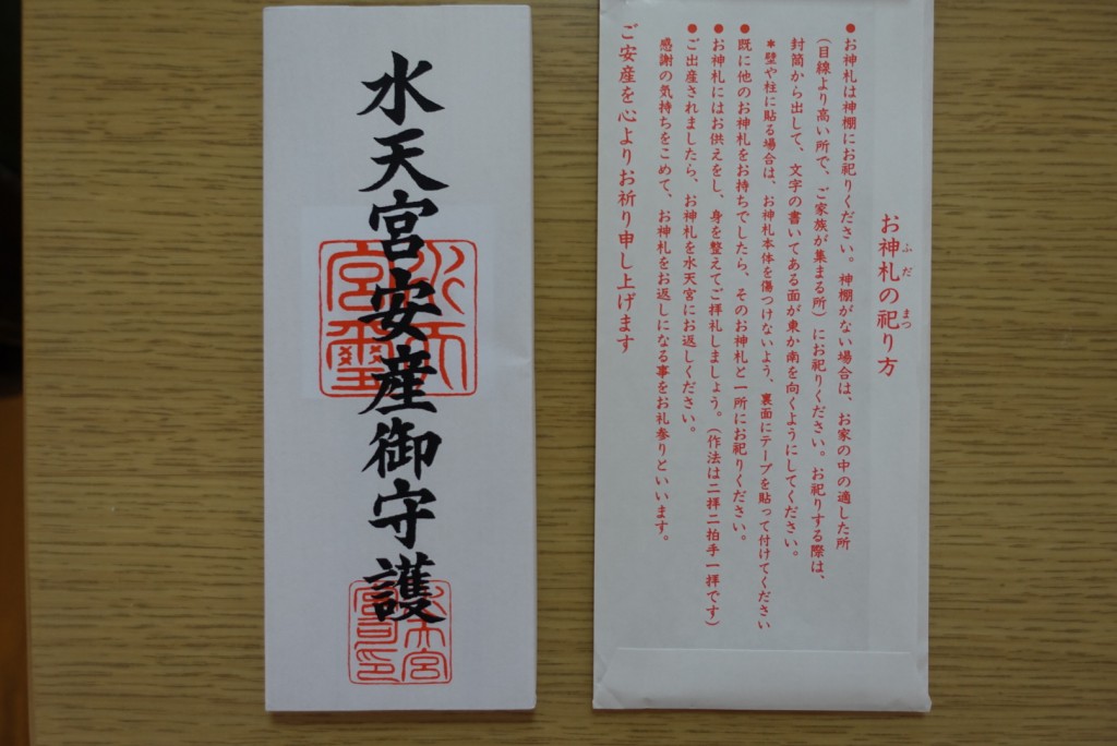 水天宮の安産祈祷でいただける御守(お守り)、御神札(御札)