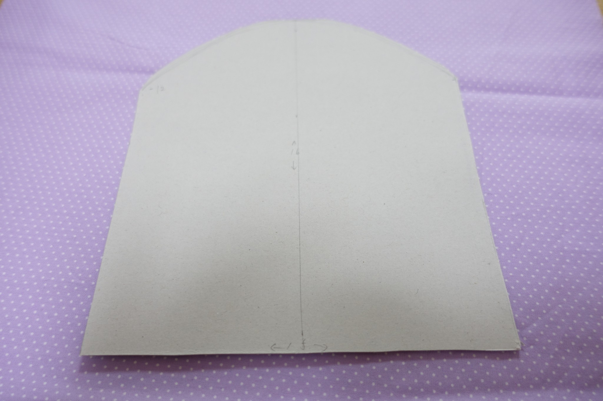 ※書いてある数字がちょっと小さいので、実際は縦18cm、横17cmくらいでこの形を作って下さい。実際は、さらに縫いしろ1cmをプラスすることを覚えておいて下さい。