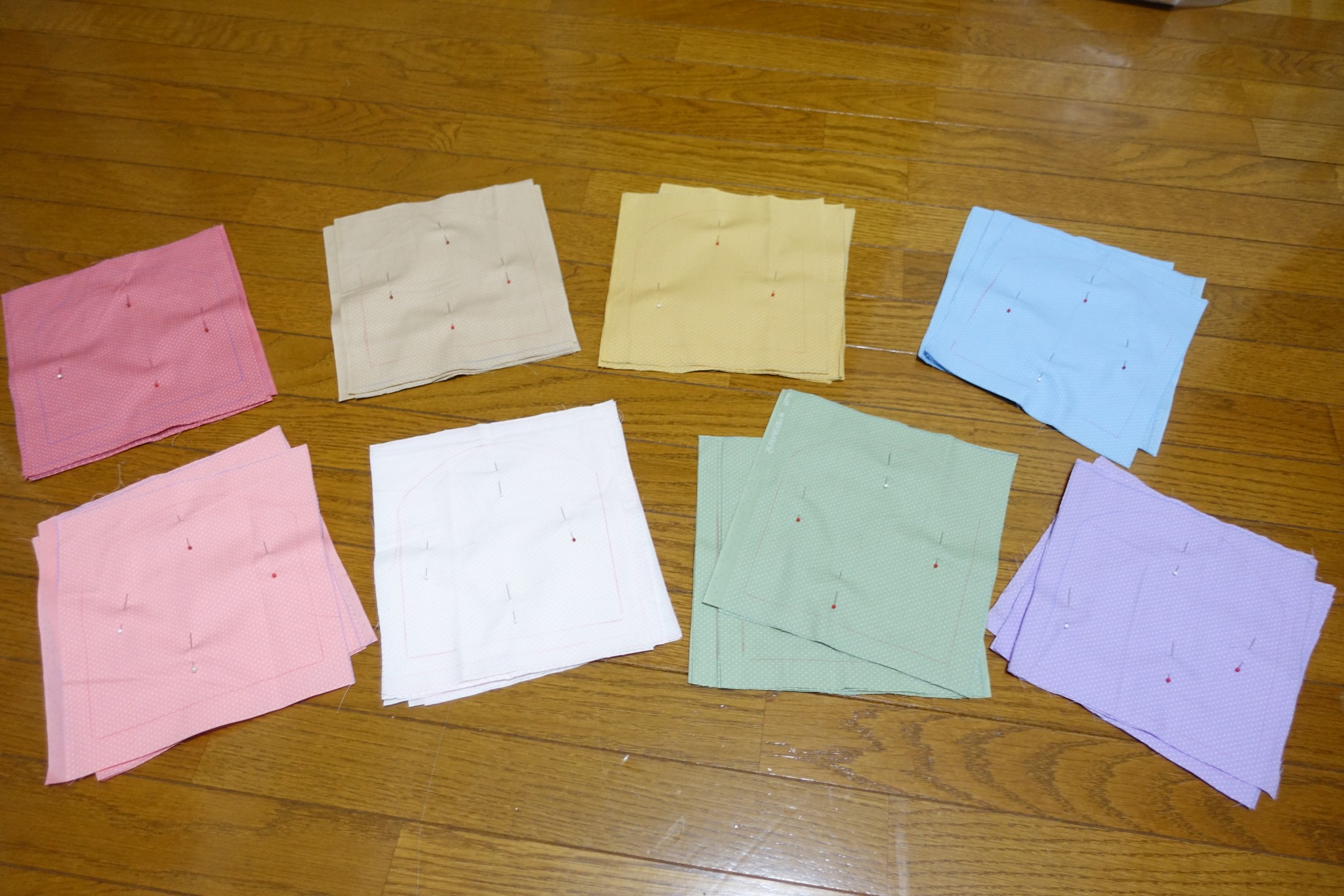 (一種類あたり3花びら=両面分なので、布は一種類につき縦18x横17cm×6枚分取れるように)