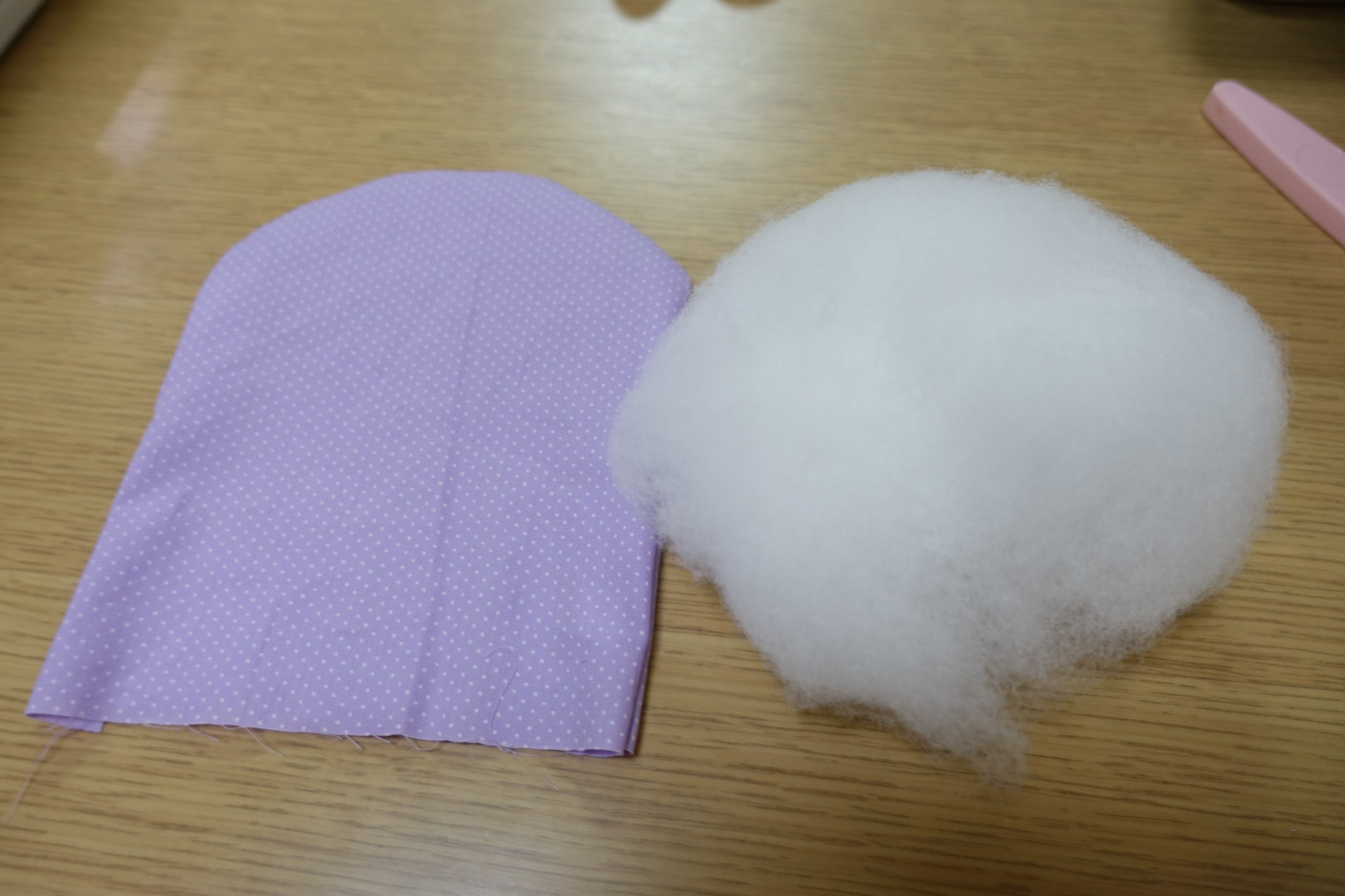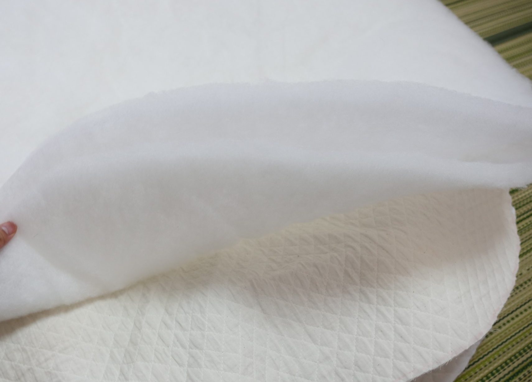 片面接着芯、もしくはキルト芯(ドミット芯)でもOKですが、私はもっとボリュームが欲しかったのでこのような綿状の布にしました。