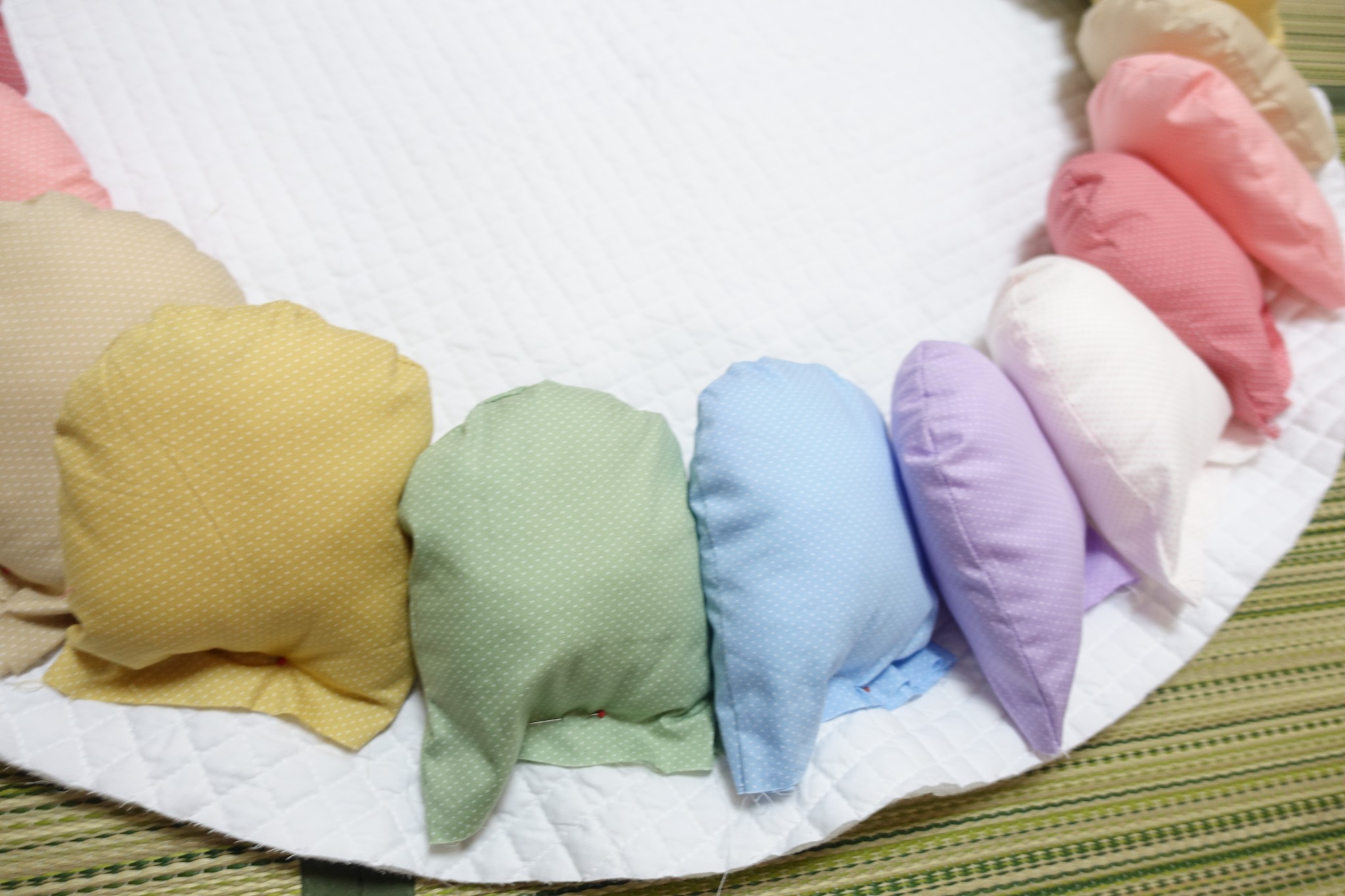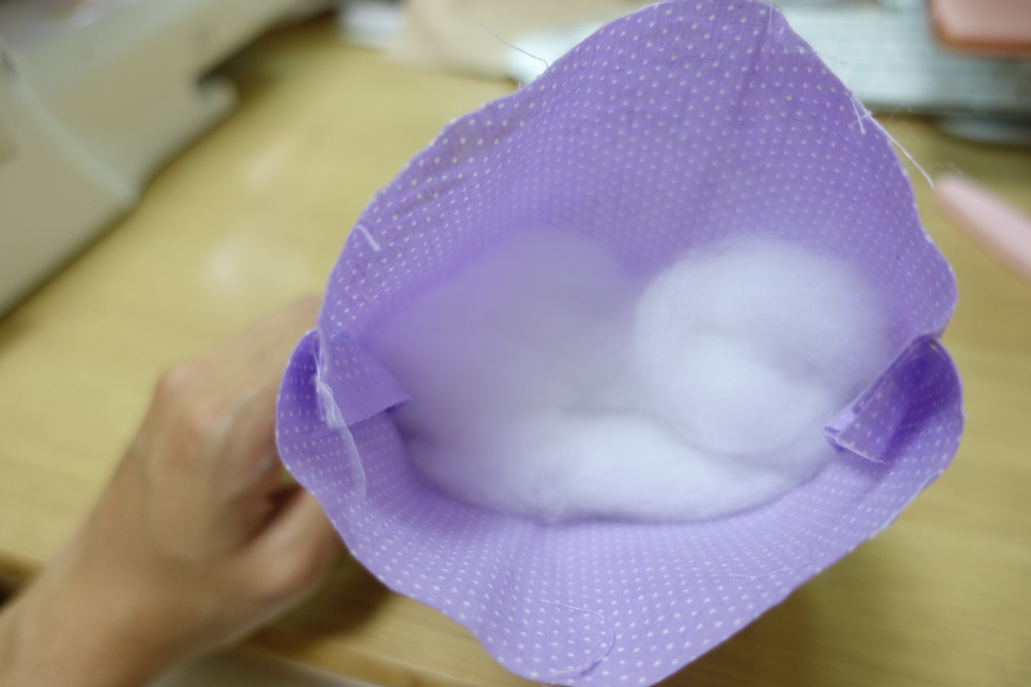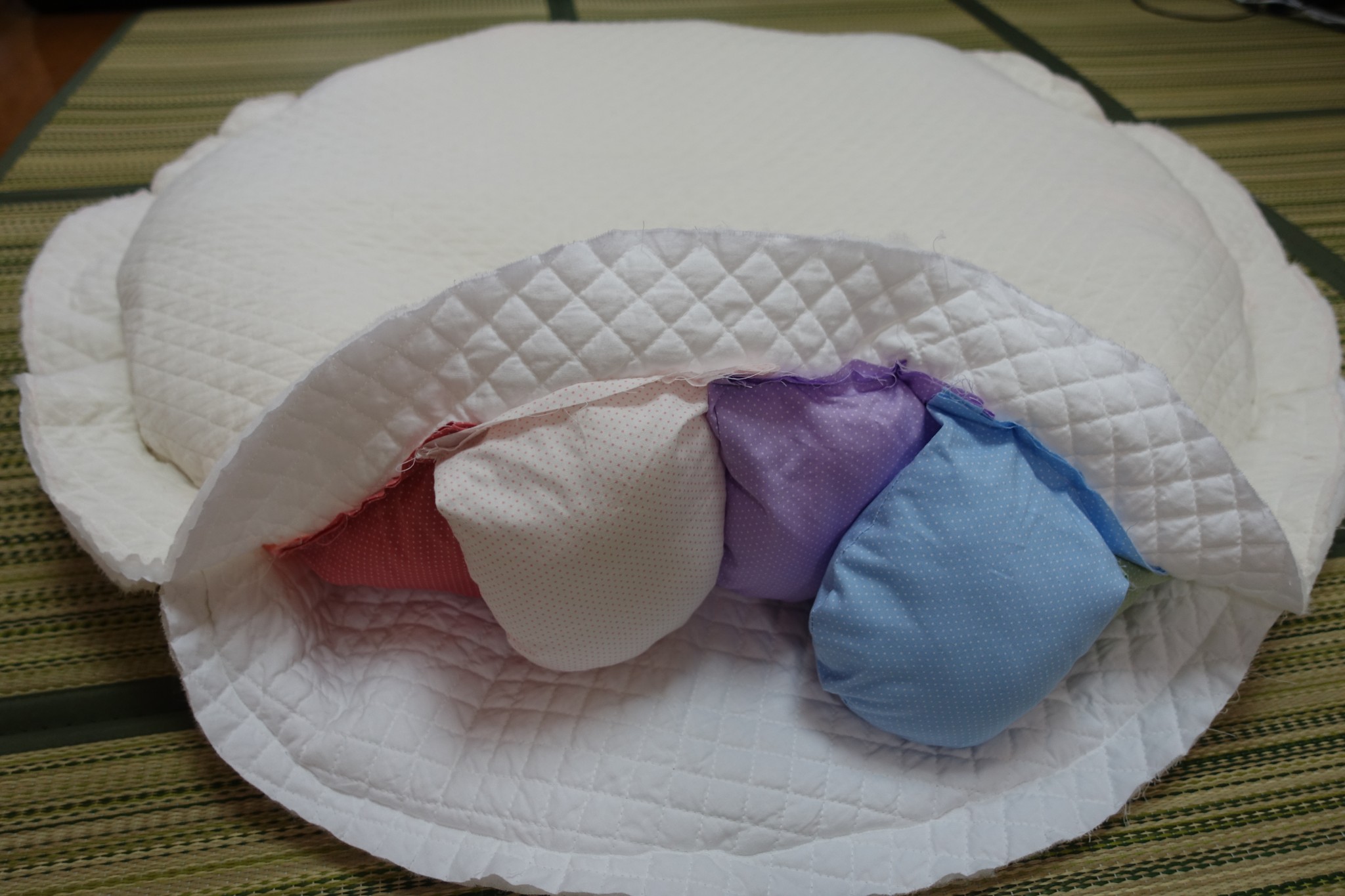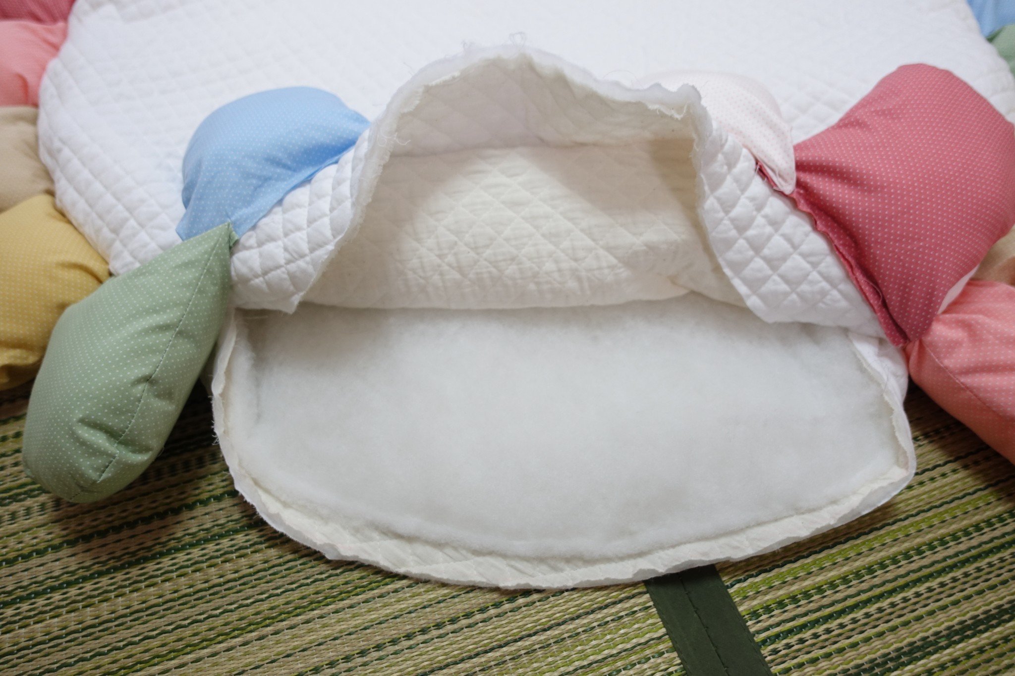 花びら部分に綿を入れるので、洗えるものを作るのは少し工夫が必要です。