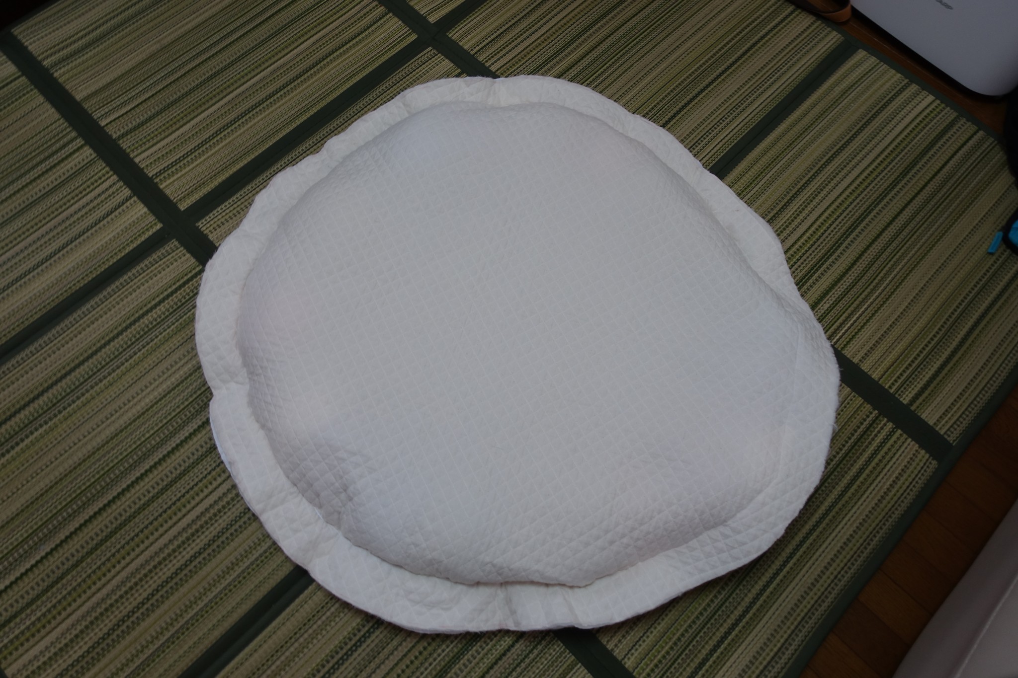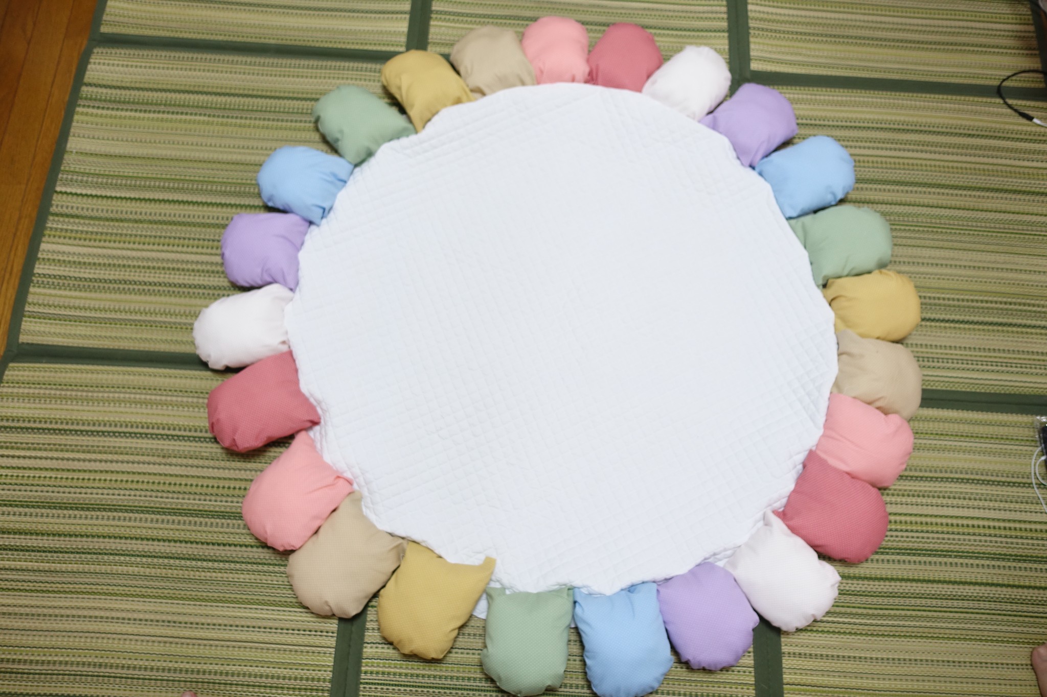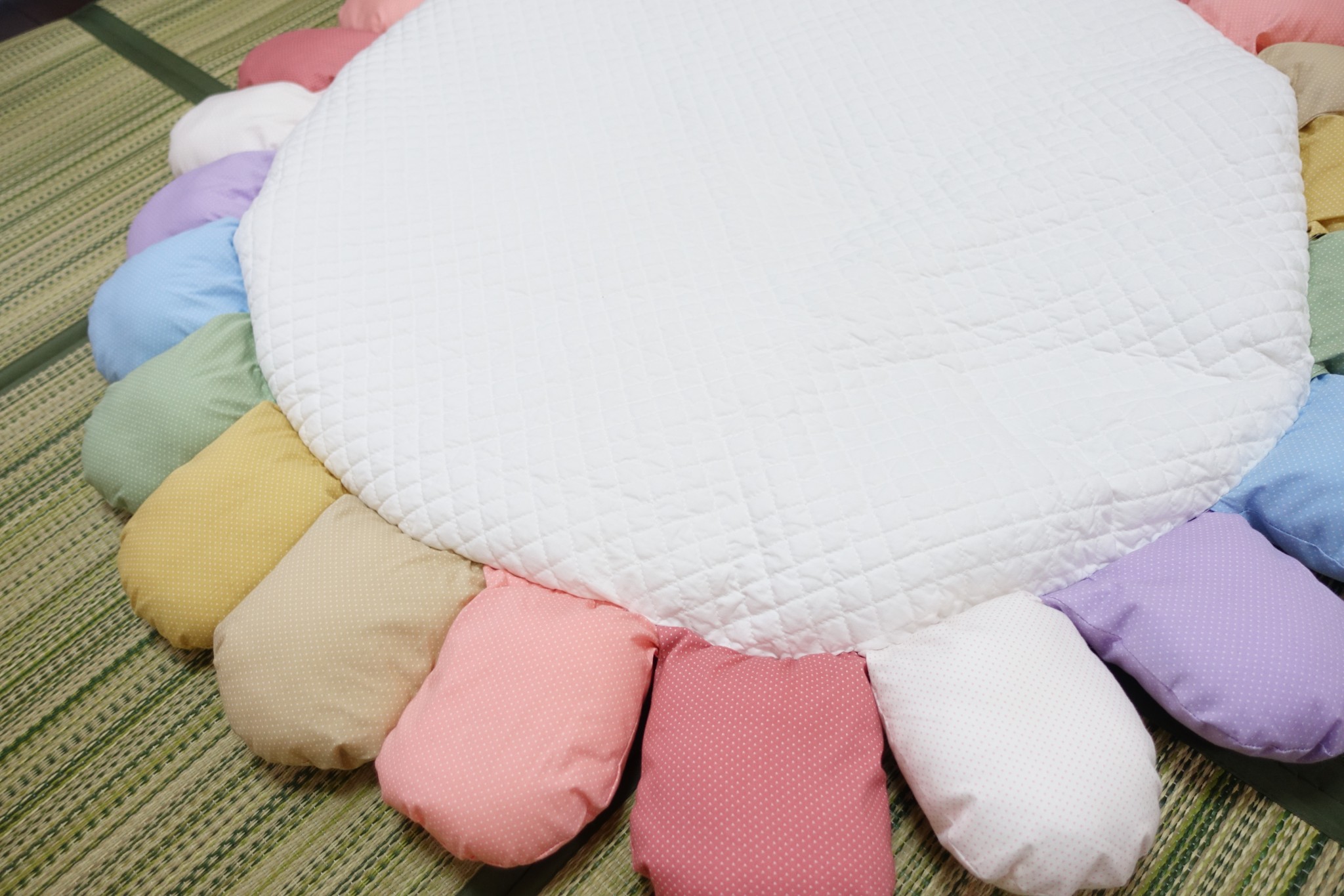 サイズは、丸いマット部分の直径が約85cm、花びら部分まで含めた直径が約110cmになりました。